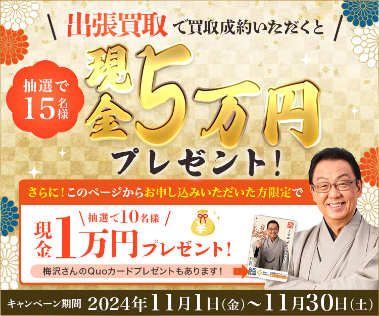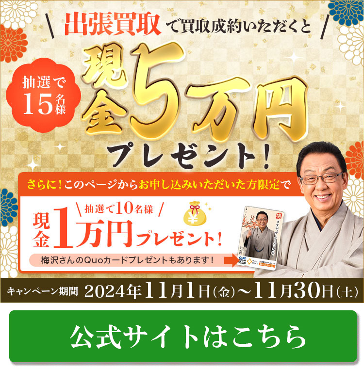 当日は、飛び入り参加で妻も参加し、着物・毛皮・時計・バッグを買取してもらい、思わぬ収入となりました。また、ぜひ近々お願いしたいです。